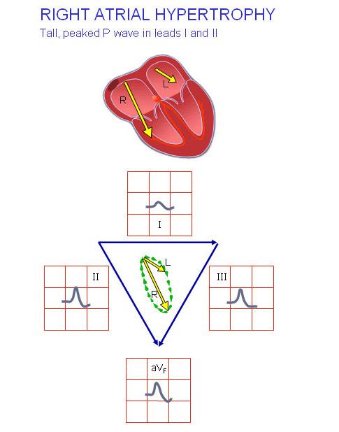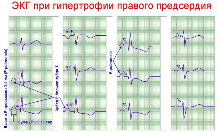 О перегрузке правого предсердия свидетельствуют изменения на ЭКГ, которые появляются после острых состояний (например, пневмонии, приступа бронхиальной астмы, отека легких, инфаркта миокарда или легочной эмболии).