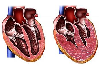 - клапанных заболеваний, когда нарушается отток крови, что приводит к увеличению стенок, а при исчерпании энергетических запасов – к их истончению;