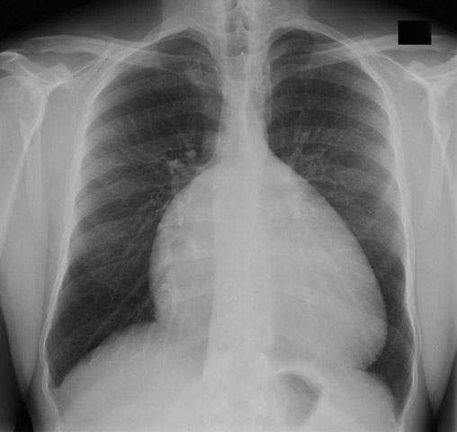 - Рентгенологическое исследование грудной клетки, позволяющее выявить изменения в правом предсердии и желудочке (контур предсердия может сливаться с контурами верхней полой вены и легочной артерией).
